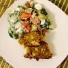 fűszerek: curry, bazsalikom, friss petrezselyem, bors, só