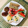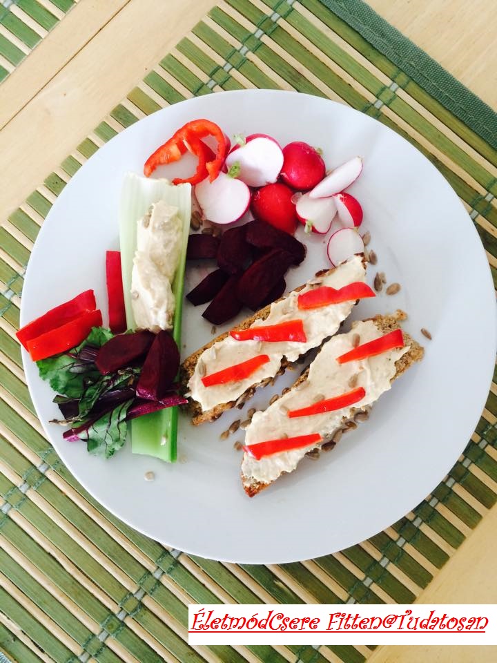 ... teljes kiőrlésű kenyérből, tojással, sajttal, padlizsánkrémmel, avokádókrémmel vagy csicseriborsó krémmel, paradicsommal, uborkával, paprikával, madársalátával.