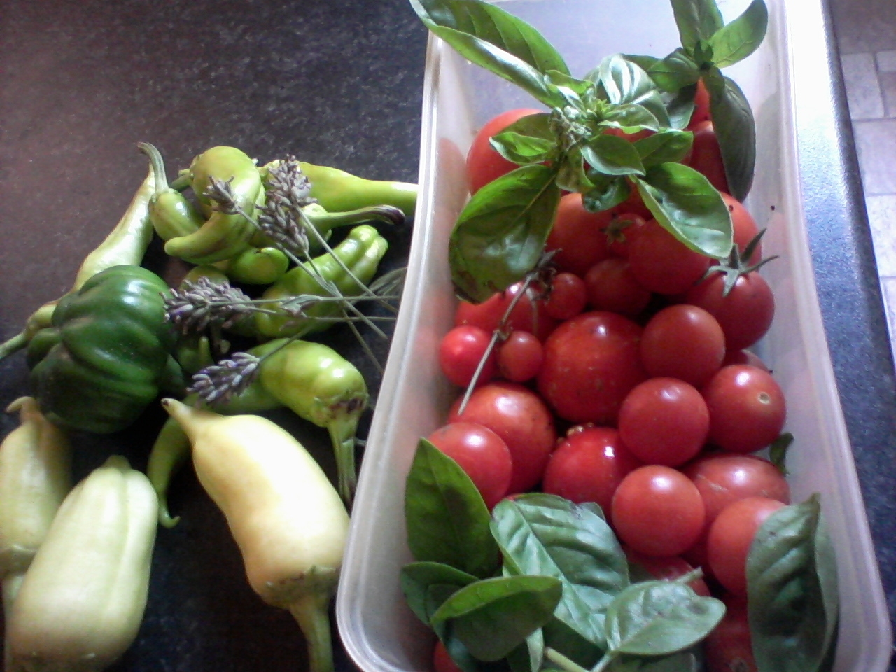 50 dkg széles zöldbab, 3 ek. citromlé, 5o dkg koktél paradicsom, 2 csokor petrezselyem, 1 fej saláta (pl. radicchio, de lehet más is), 1 ek. vaj, frissen őrölt bors, tengeri só, néhány száll friss bazsalikom.