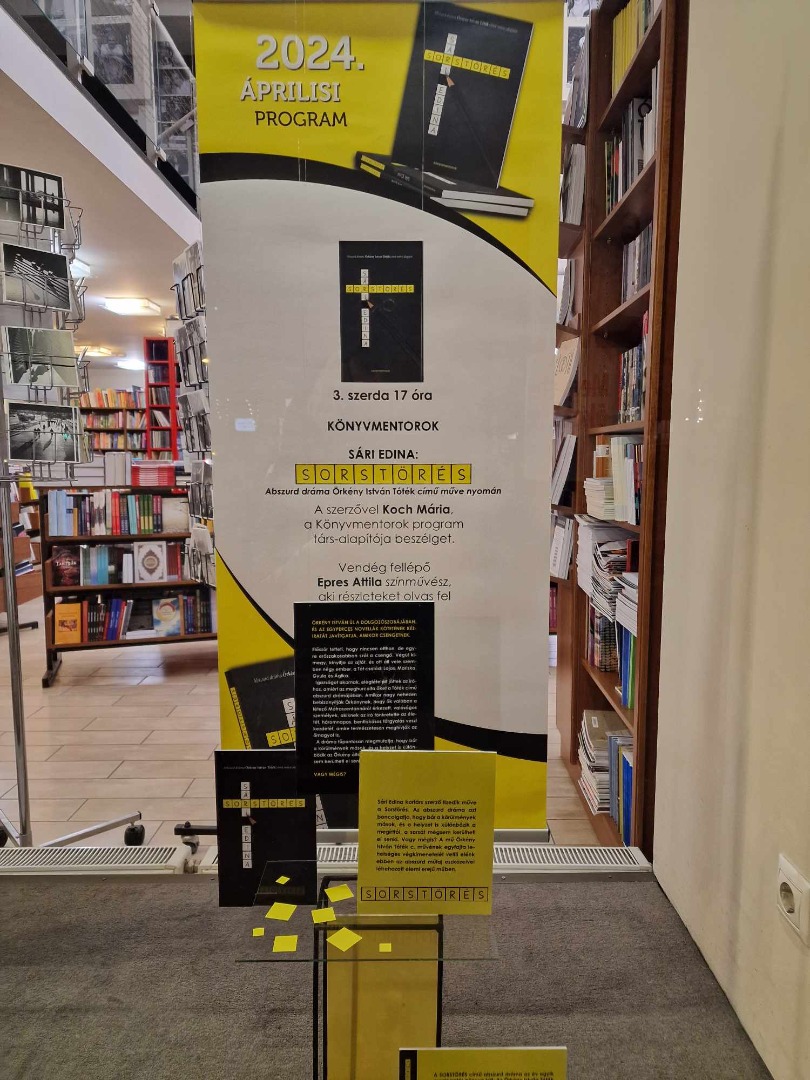 A könyv kapható az Írók Boltjában, vagy megrendelhető a https://konyvimadok.hu/termek/sari-edina-sorstores-abszurd-drama-orkeny-istvan-totek-cimu-muve-alapjan/